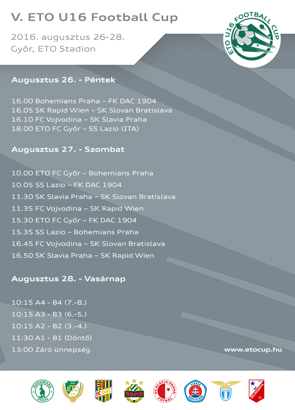 Idén olyan rangos utánpótlás nevelő klubbok érkeznek Győrbe, mint a Lazio, Rapid Wien, FK Vojvodina, Bohemians Praha, Slavia Praha, Slovan Bratislava és a DAC.